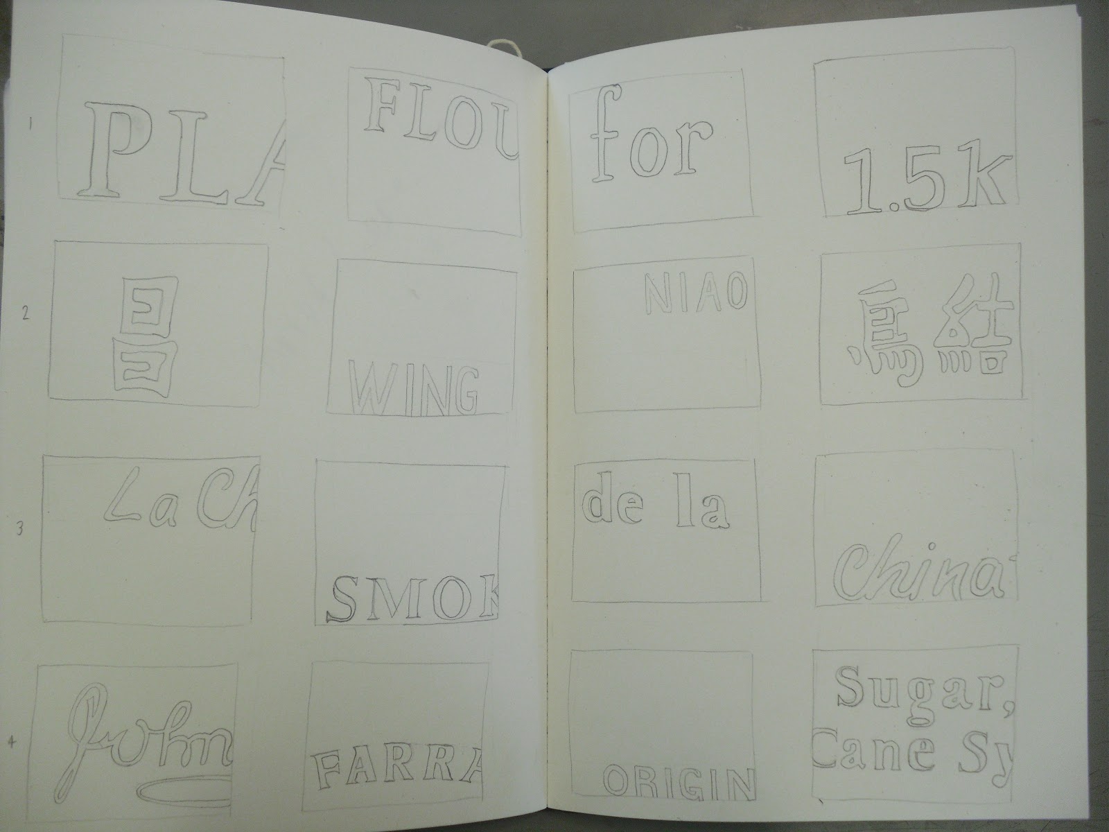 The second task in the graphic design project was to create thumbnails before working straight on to my 4 backgrounds i previously made. I looked at different types of font/texts from food packaging labels and bottle labels and applied them to my thumbnails in different compositions to show various ways of presenting them. This was a quick exercise yet i found it quite enjoyable to practise drawing different types of fonts.